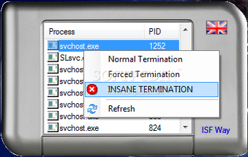 All the action is one click away, that is to say you will be able to select one of the available operations by right-clicking any item on the list. The options you have are to stop the selected process normally, forcefully or you can use the ultimate weapon and go for the 'Insane Termination' mode.