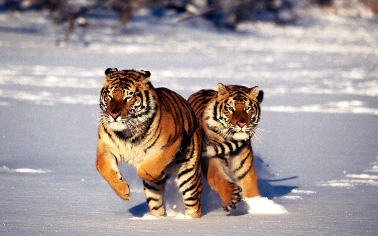 free wallpapers Hot Pursuit Siberian Tigers Animals, download Hot Pursuit Siberian Tigers wallpaper for TV, free Hot Pursuit Siberian Tigers wallpaper download